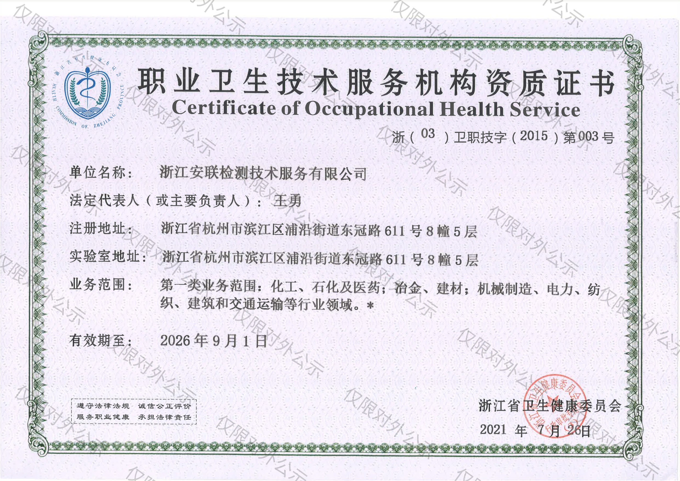 職業衛生技術服務機構資質證書